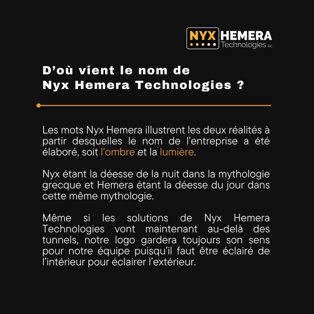 Nyx Hemera Technologies développe et installe des systèmes de contrôle d’éclairage adaptés aux villes intelligentes pour les tunnels routiers, les passages souterrains et toute autre infrastructure où les économies d’énergie, la réduction des coûts d’exploitation, une sécurité accrue, des opérations optimalisées et un développement durable sont impératifs.